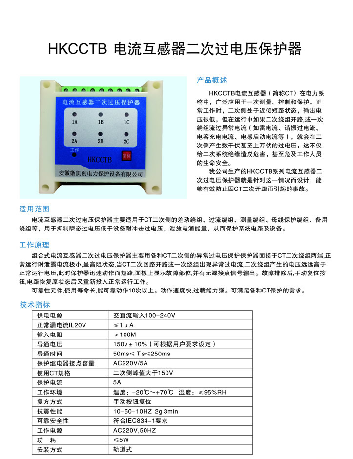 - 產品簡介:???HKC--CTB電流互感器二次過電壓保護器