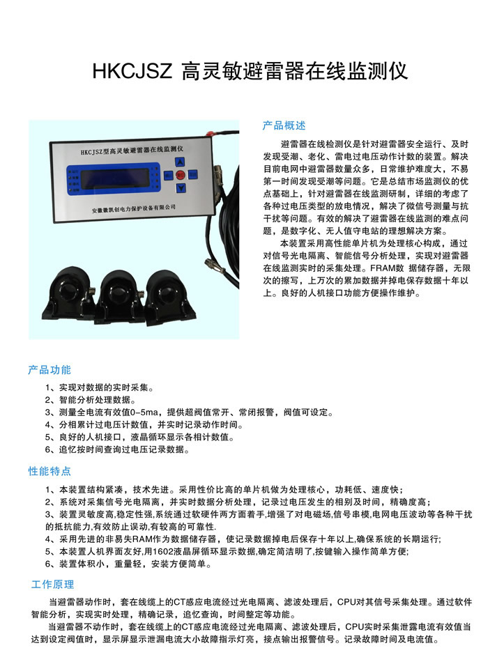 - 產品簡介:???HKCJSZ高靈敏避雷器在線監測儀