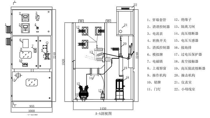 智能型消弧消諧裝置為固定式開關柜,外形尺寸可根據用戶要求加工, 智能消弧柜結構如裝置結構圖所示。對6kv、10kv的柜體,考慮用戶檢修方便, 寬度般不小于800mm,對于35kv柜體寬度般不小于1800mm,深度和高度可以與其并柜的柜體保持一致。